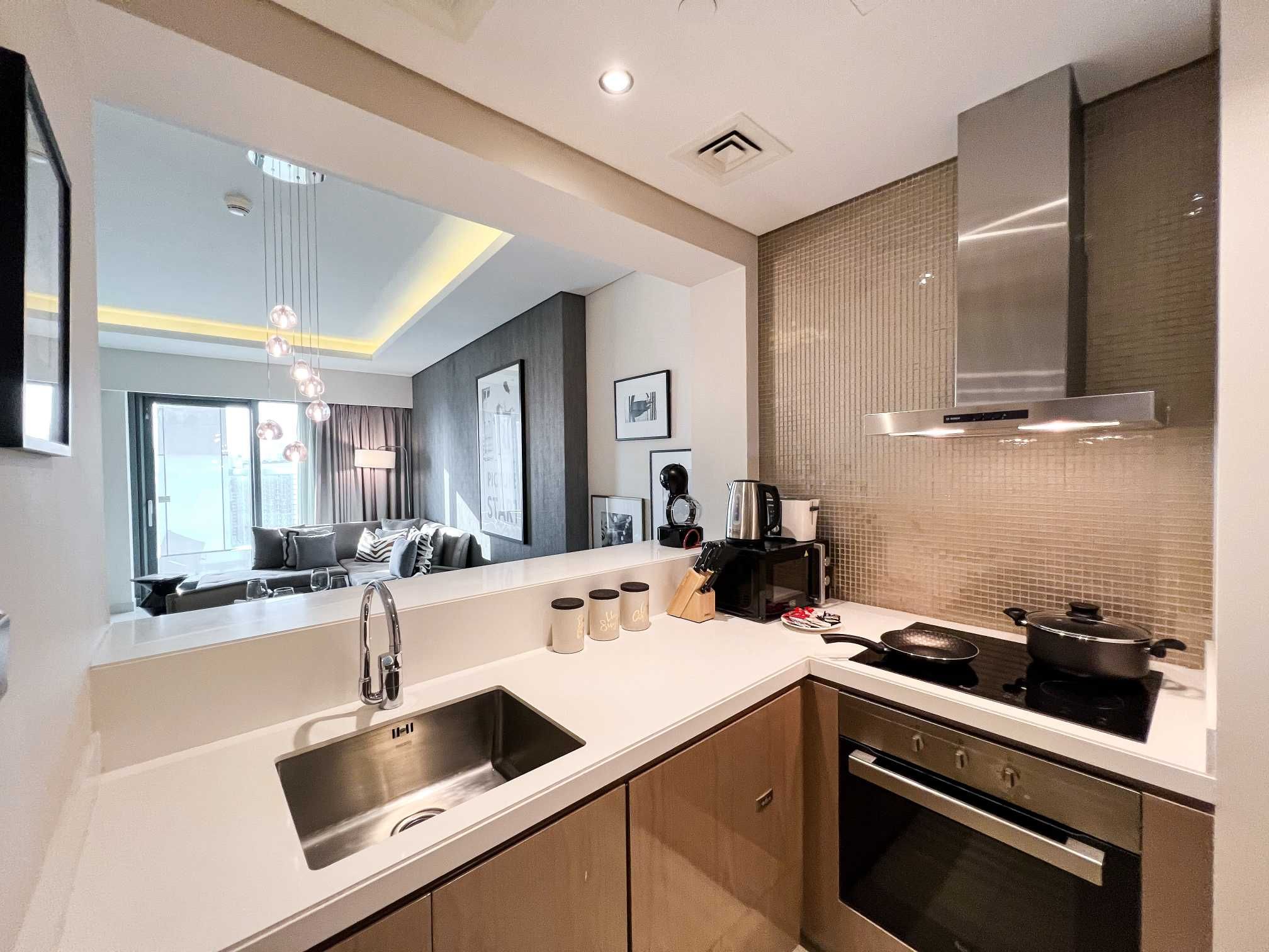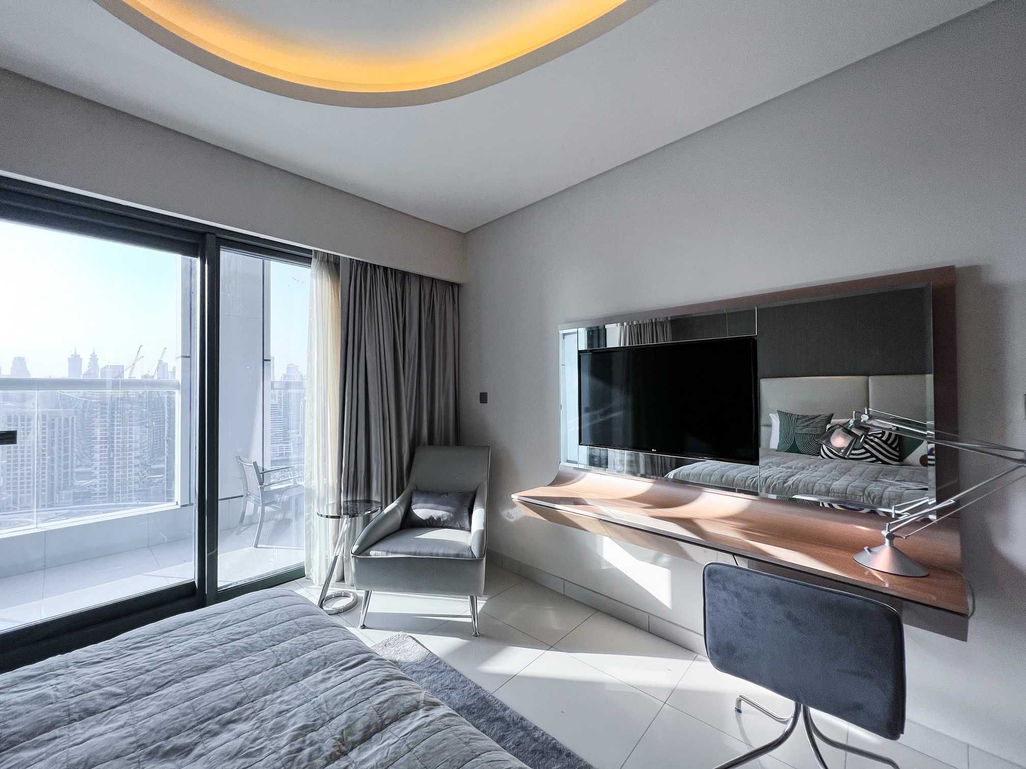 My luxury 1 Bedroom home is located in the heart of Dubai, a short drive away from the Burj Khalifa and Dubai Mall. The building has a lobby that has flexible screens, the colors of which are adjusted to give different atmospheres in the morning and evenings. The effect is further enhanced with adjustable scents and sounds. The buildings’ stunning architecture rivals the world’s best.